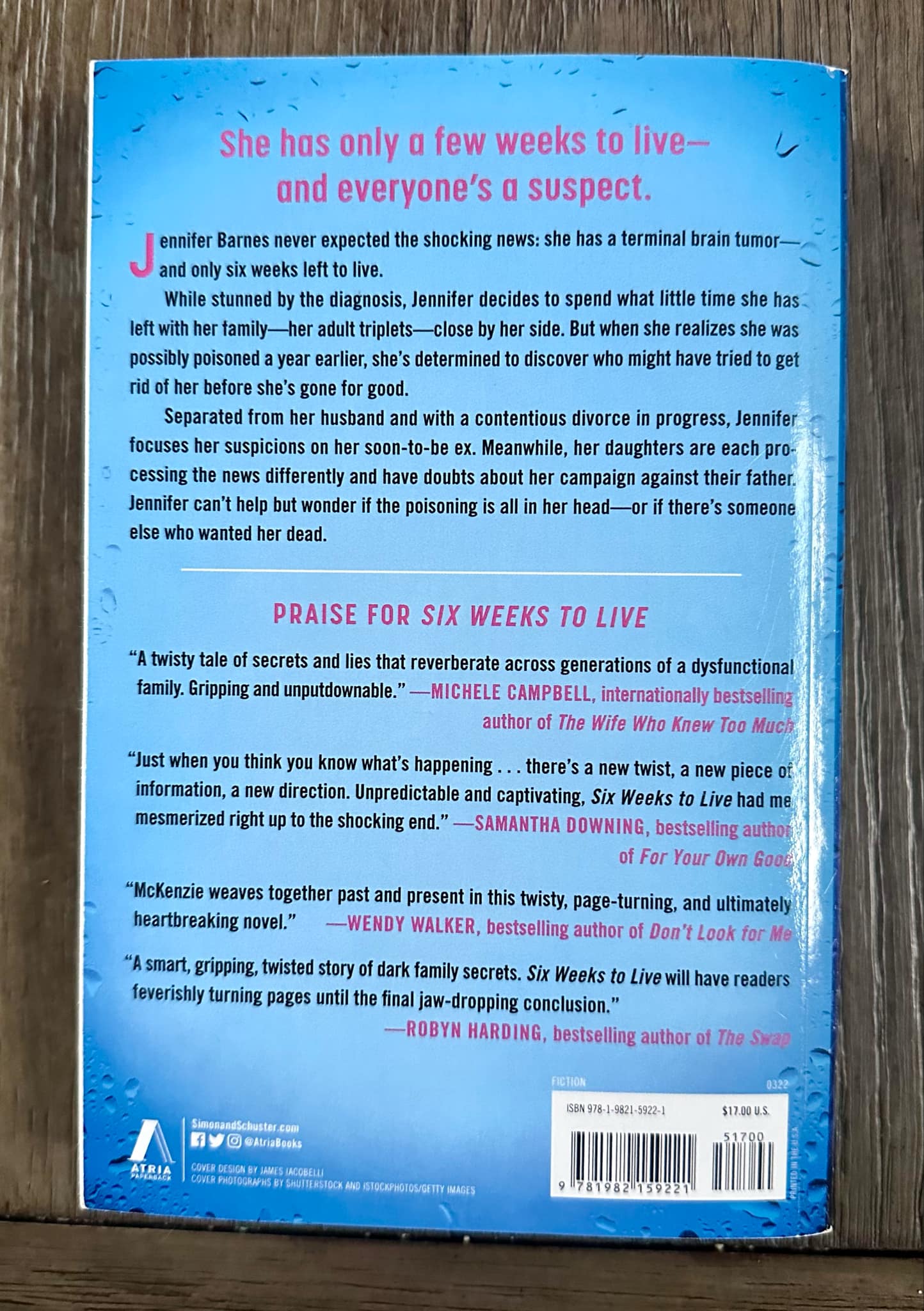While stunned by the diagnosis, the forty-eight-year-old mother decides to spend what little time she has left with her family—her adult triplets and twin grandsons—close by her side. But when she realizes she was possibly poisoned a year earlier, she’s determined to discover who might have tried to get rid of her before she’s gone for good.